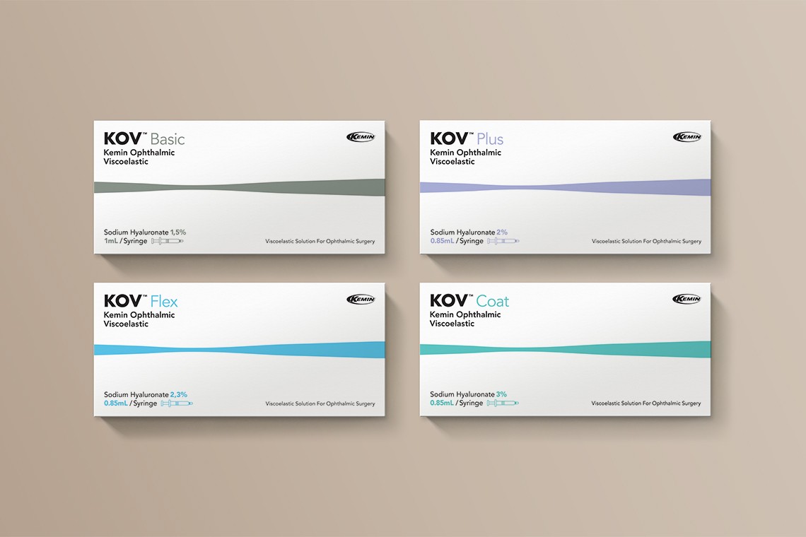 Identity and packaging design for a new range of ophthalmic viscoelastics to be used by doctors in cataract surgery.
